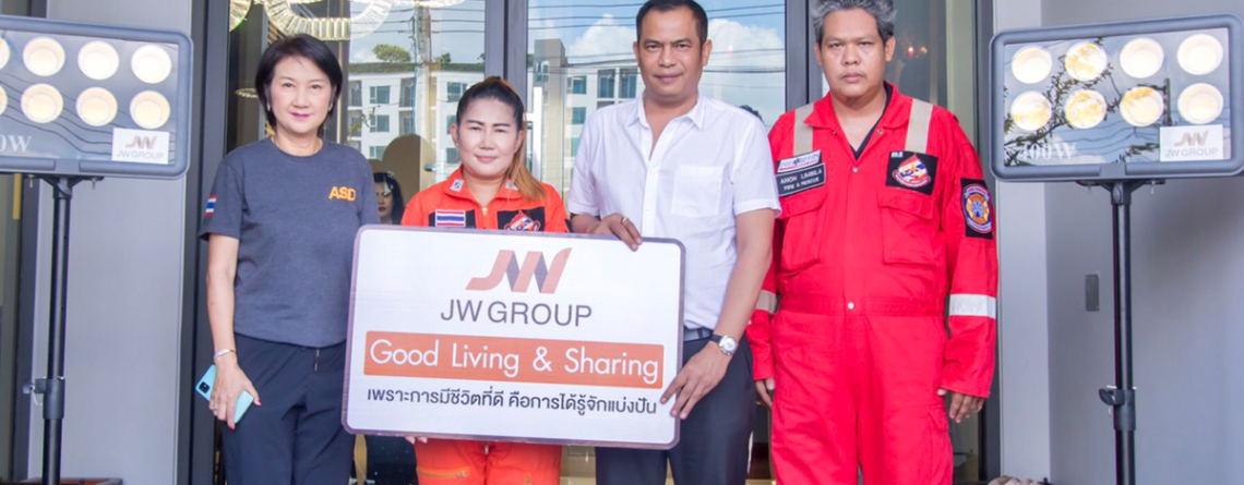 JW Group โดย วิสิษฐ กอวรกุล ประธานกรรมการบริหาร บริษัทในเครือ เจดับบลิวกรุ๊ป ส่งมอบอุปกรณ์ส่องแสงสว่าง ให้กับหน่วยบรรเทาสาธารณภัยราษฎร์วารีเหนือ 33-00 เพื่อใช้ในการปฏิบัติหน้าที่ ดูแลบรรเทาทุกข์ให้กับประชาชน ในยามเกิดเหตุภัยช่วยเหลือได้ทันท่วงที
